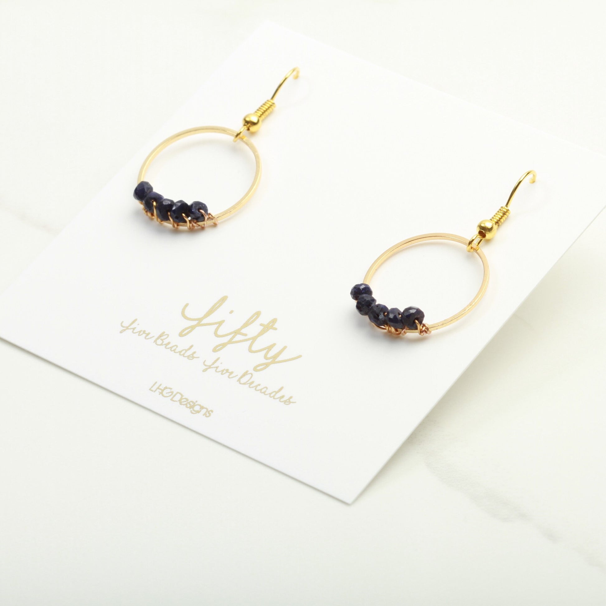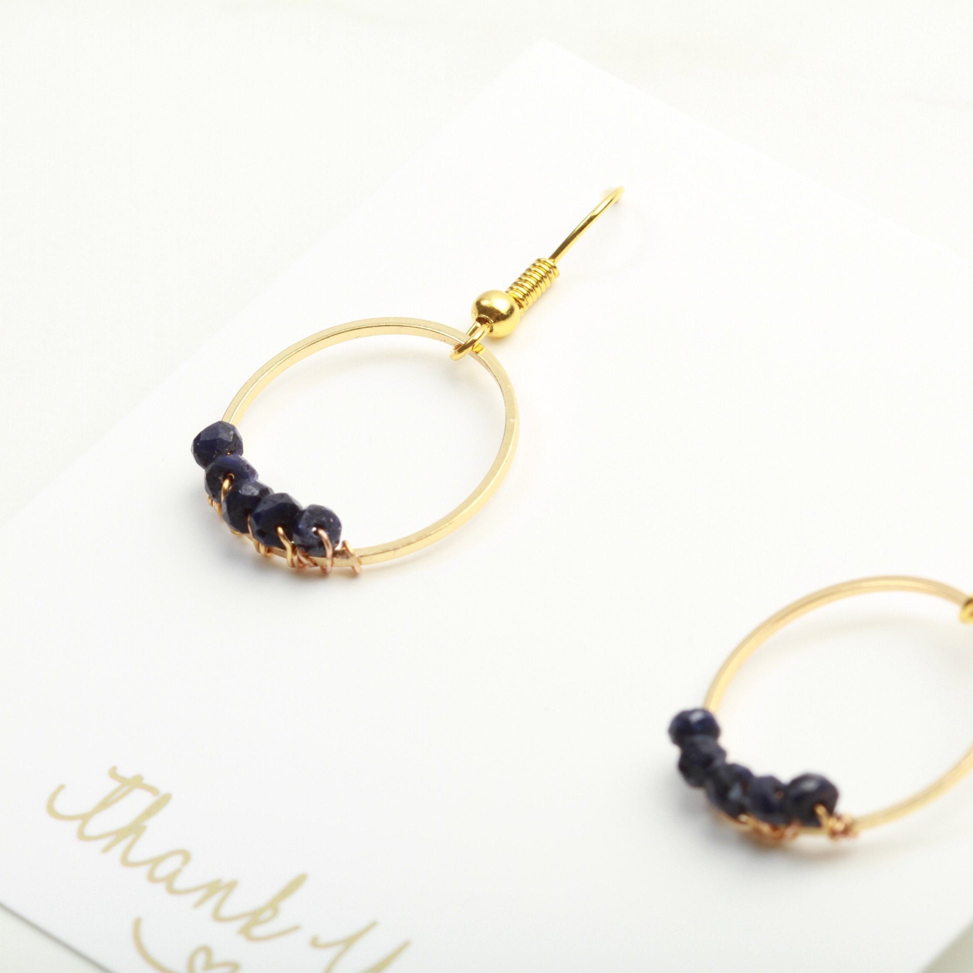 Minimalist Gold and Raw Sapphire Gemstone Circle earrings, 50th Birthday Gift for Women, Birthstone Gifts for Women, September Birthstone
